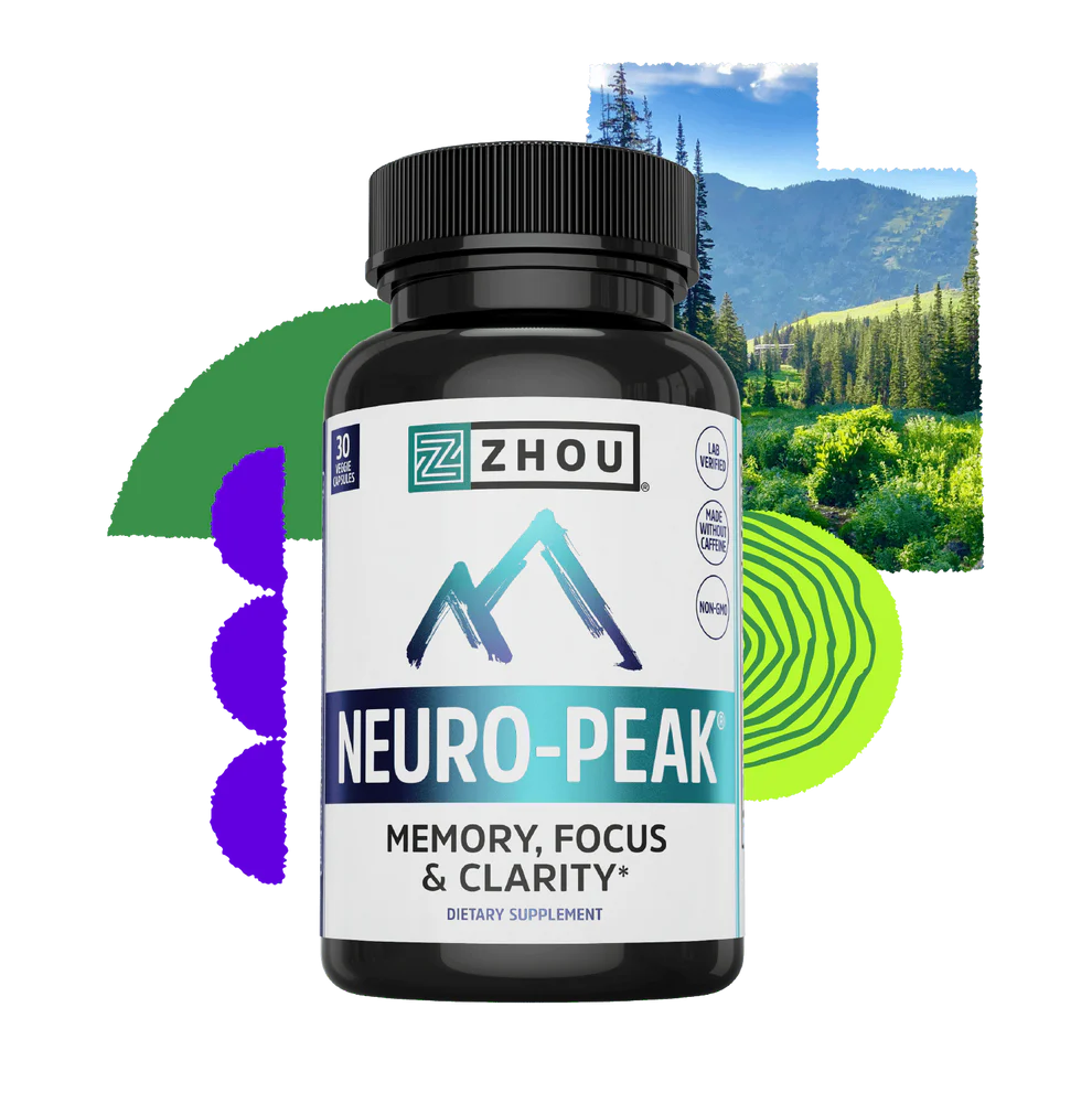 Zhou’s Neuro-Peak is your tool for memory, focus, clarity, and peak performance. Neuro-Peak is a nootropic, which means it’s specially formulated to help support your memory and cognition. Perfect for business professionals, students, gamers, CEOs, and anyone who just wants to feel like they’re at the top of their game. PLUS you’ll love the side benefits of mood and stress support.