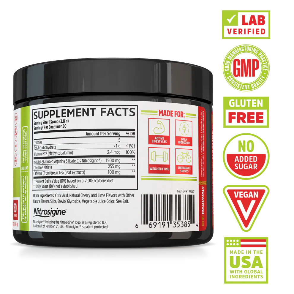 Amp up the voltage for your next workout. Lite Up XTRA is your new favorite hype man, a boosted pre-workout delivering sustained energy and focus. Lite Up XTRA is formulated with clean, naturally-derived ingredients with the purpose of fueling performance, not giving you jitters and itches. Each scoop contains 100 mg of clean caffeine sourced from green tea, enough to give you a boost but not enough to leave you with the jittery feeling from too much caffeine. Our formula also contains Nitrosigine® for a nitric oxide boost and malic acid to support energy and stamina, so your workout doesn’t stand a chance. Plateaus? Never heard of ’em.