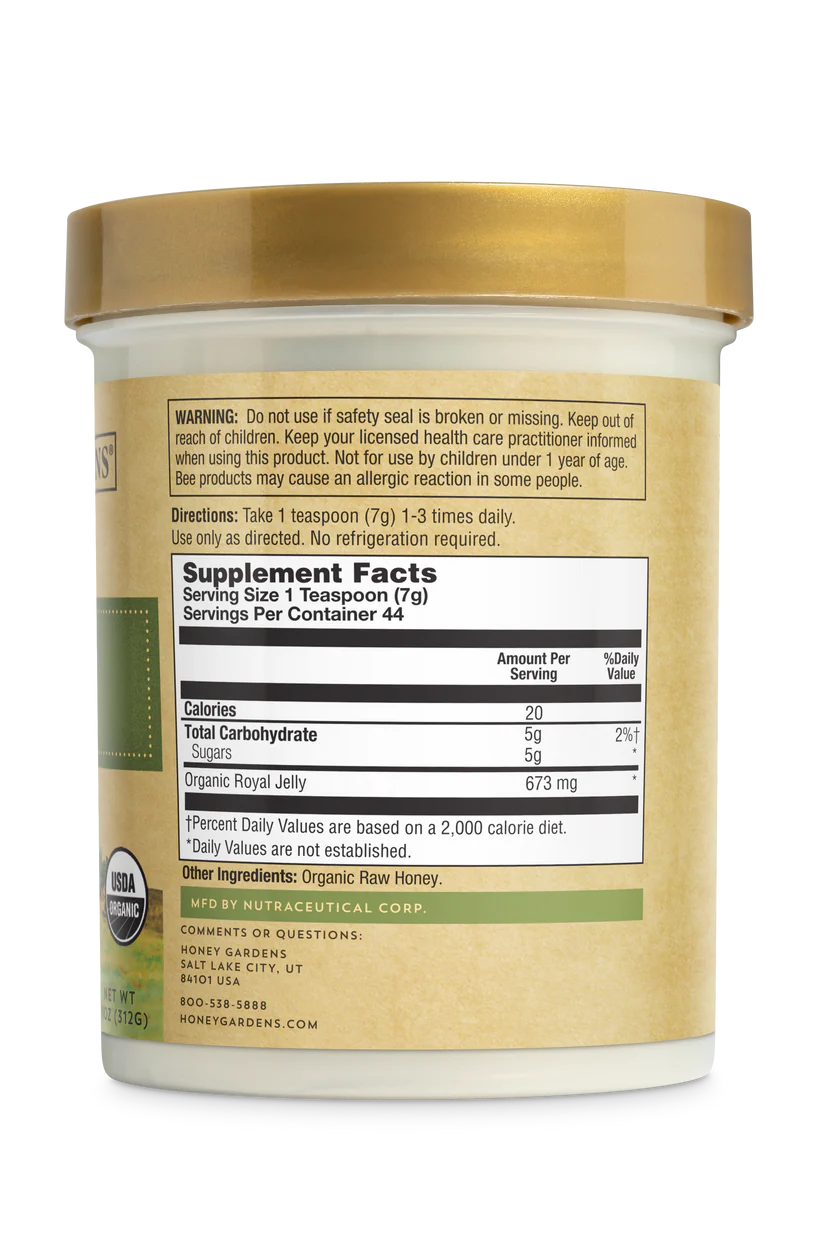 • Features 673 mg of fresh royal jelly per serving blended with organic raw honey
