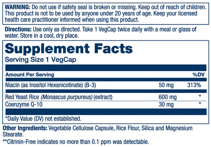 - Delivers 600 mg of red yeast rice and 30 mg CoQ-10 to support overall wellness*